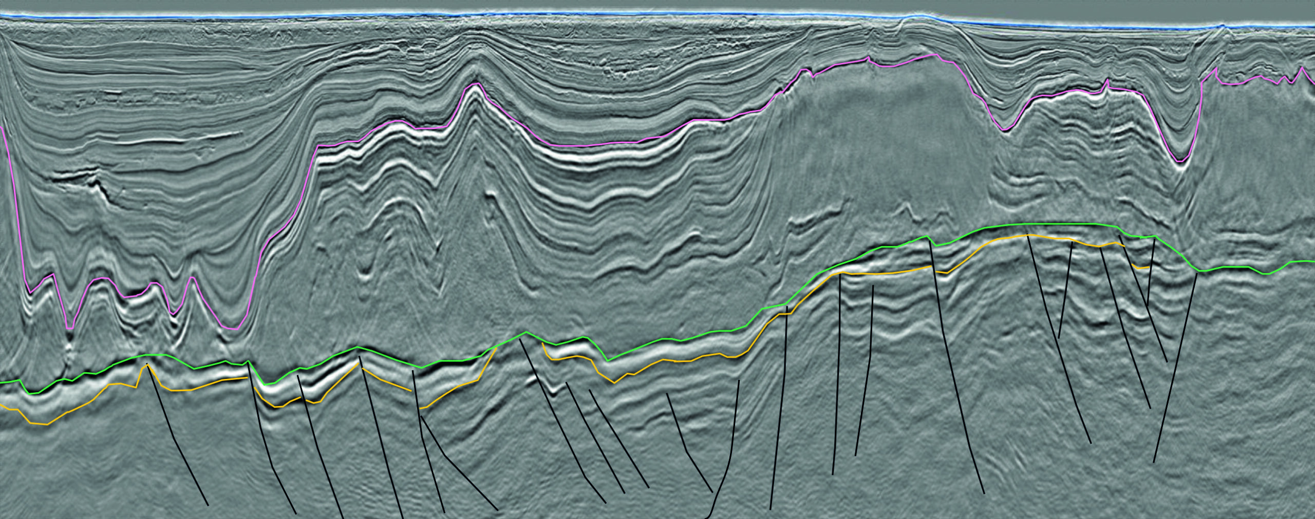 As broadband data provide both low and high frequencies they are ideal for exploration as potential targets at all levels can be imaged. The characteristic broadband ‘texture’ highlights stratigraphy as the additional low frequencies give an envelope to the seismic signal that shapes the larger-scale impedance variations, or in geological terms, the major lithology variations. This increases confidence in correlating seismic interpretation across faults and other major structural features, allowing layers to be easily distinguished.