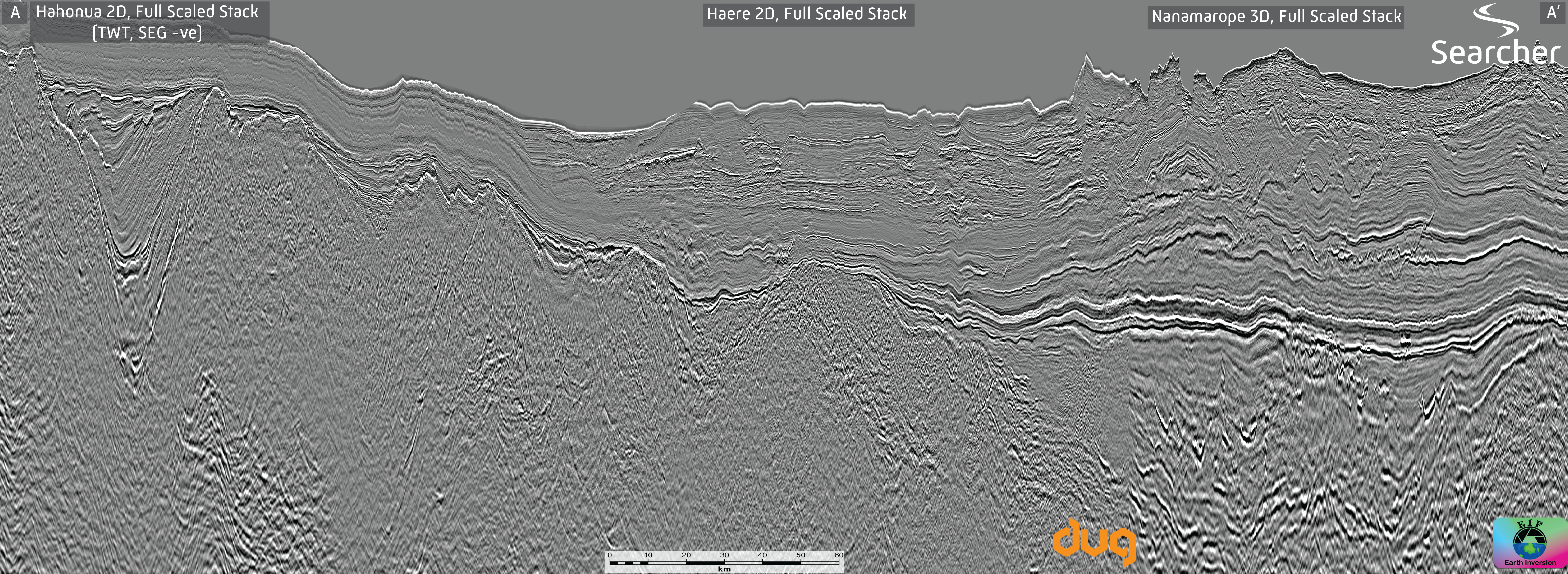 This began to change in 2006, when Searcher, in partnership with Spectrum, acquired the Lahara Seismic Survey. Originally processed with a PSTM workflow, this imaged previously unseen depocentres and provided hints of preserved sedimentary sequences beneath the Coral Sea Breakup Unconformity beyond the Fly River Delta. 2014 reprocessing with a PSDM workflow, quickly followed by the acquisition of two long-offset 2D broadband surveys in 2015 and 2016 in partnership with BGP, covered the Gulf in a grid of 10×10 km to 5×5 km seismic that imaged to 35 km depth.