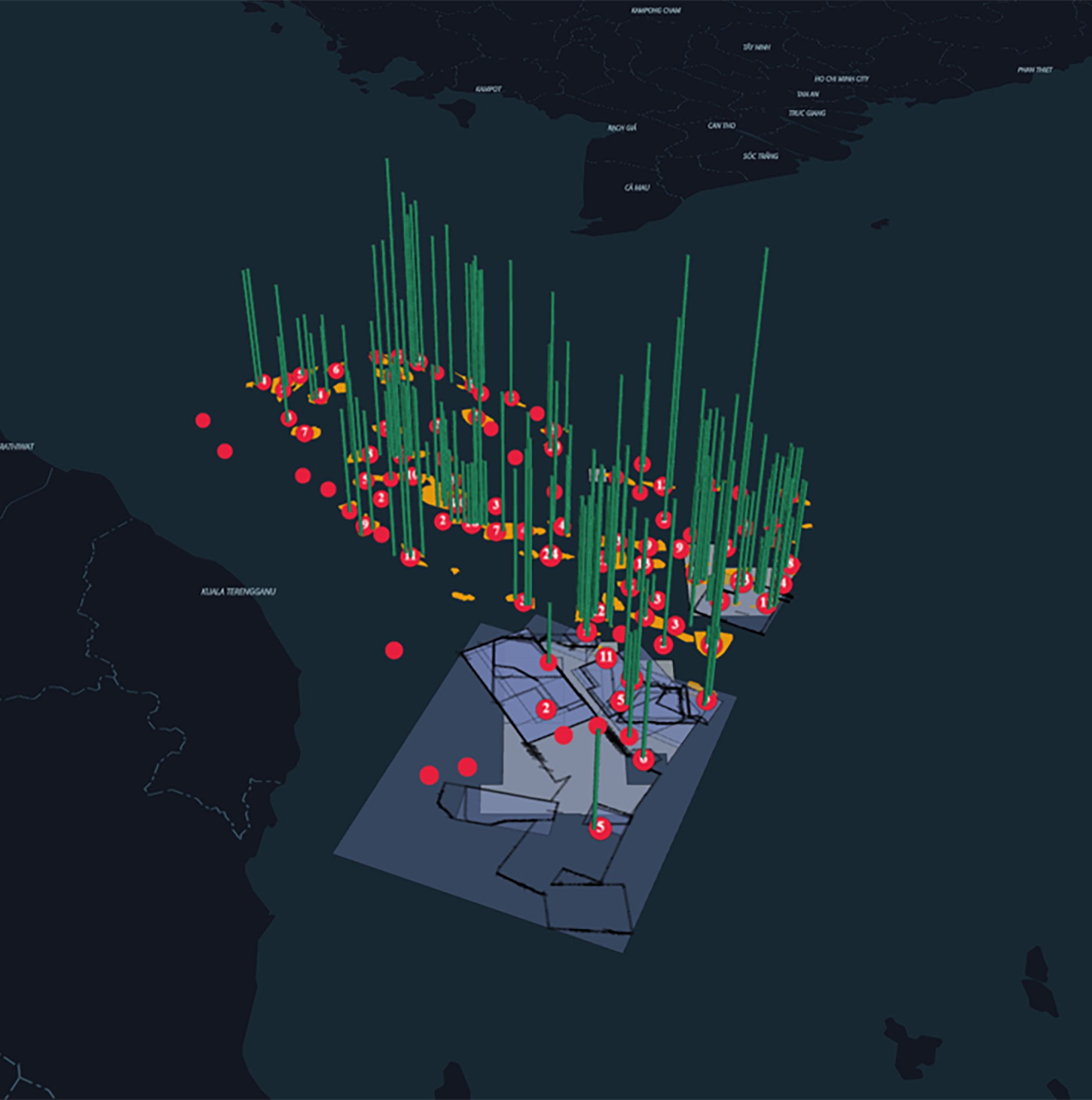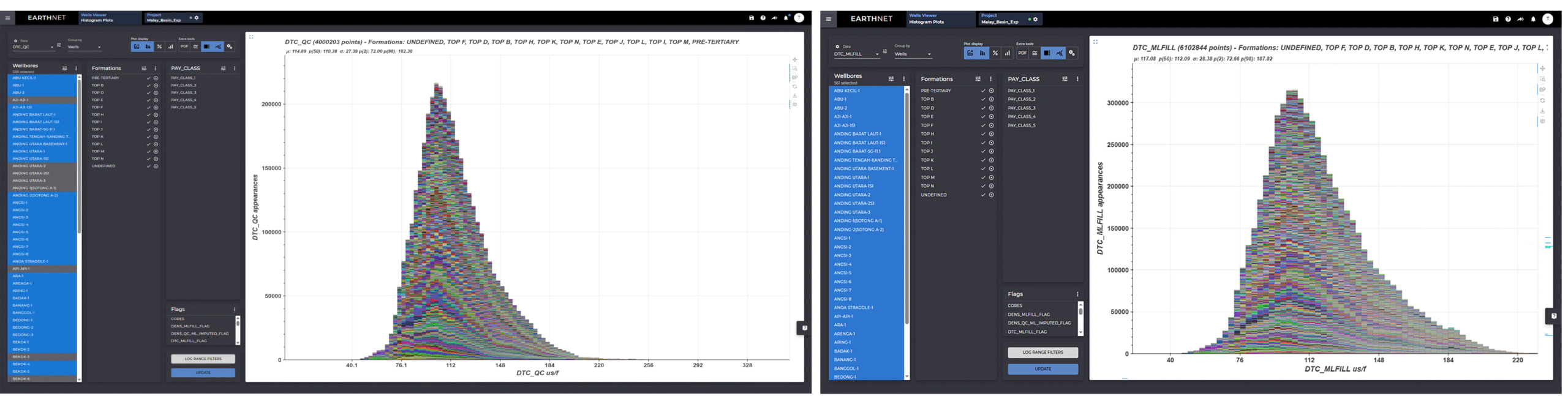 - Well Data Access: Wells can be selected directly in the PETRONAS myPROdata dashboard and visualized in EarthNET, with logs displayed on the fly (Figure 1).