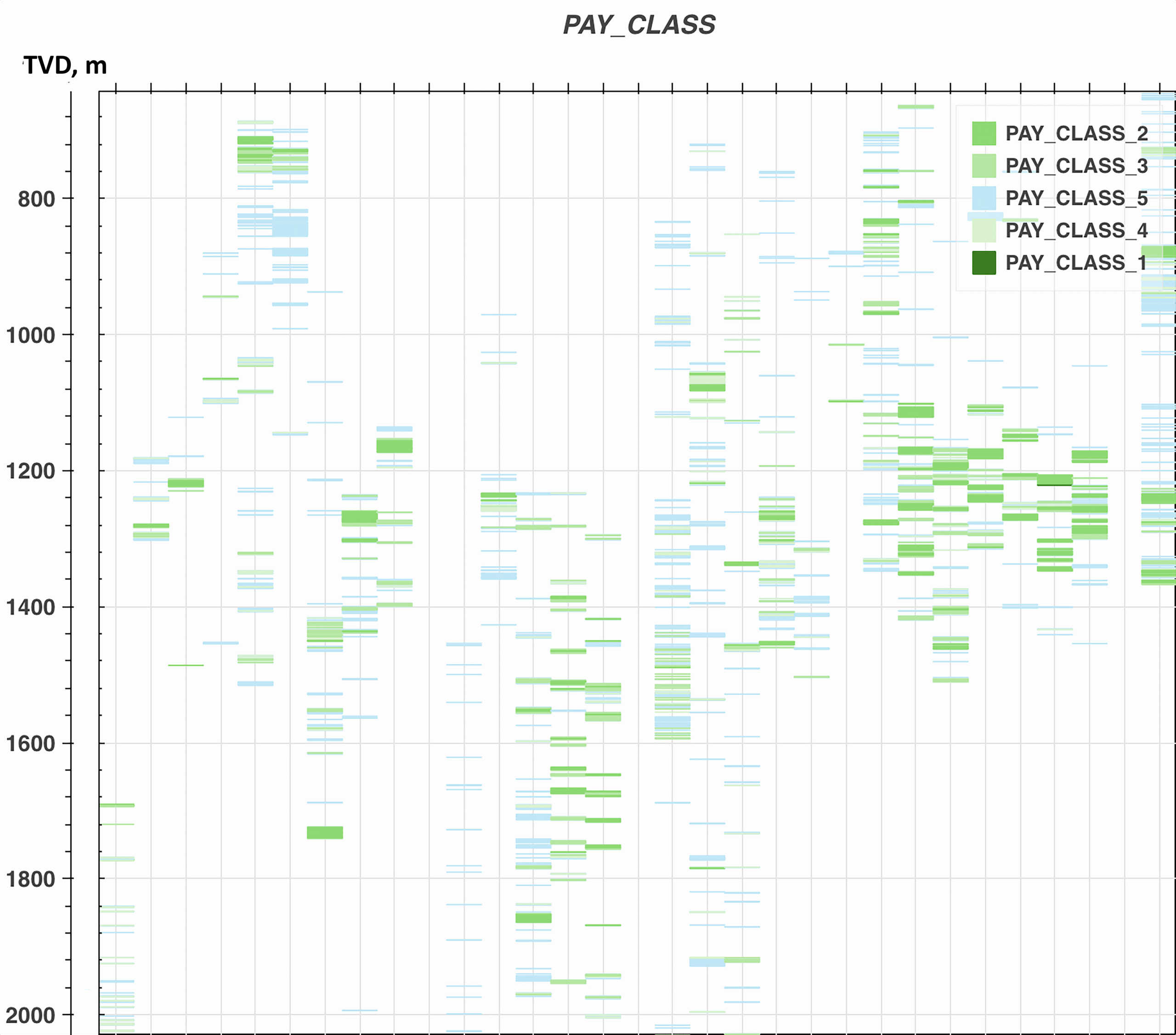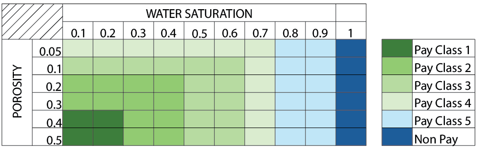 These cut-offs were determined in close collaboration with PETRONAS MPM. Class 1 represents high-quality reservoirs (porosity > 0.4, Sw < 0.2), while subsequent classes represent progressively lower reservoir quality.