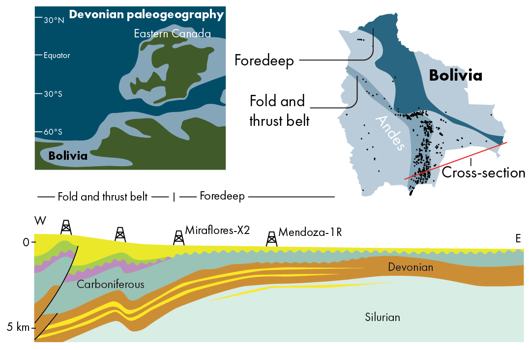 The petroleum system in the Bolivian fold and thrust-belt relies to a large extent on Devonian source rocks, deposited in a seaway that opened up in a northerly direction 400 million years ago. And it is this Devonian source rock that is the key when exploration shifts towards the more distal places of the present-day foreland, where subtle, tight, and unconventional resources may exist.