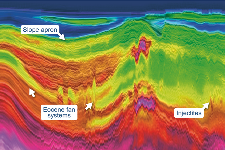 The basin was subjected to extensive igneous activity associated with the proto-Icelandic plume and seafloor spreading in the North-Atlantic during the Paleocene to Early Eocene. Thick sequences of basaltic lava flows were deposited, along with extensive emplacement of subsurface intrusive sill complexes. The Cenozoic period is signified by post-rift thermal subsidence and minor episodes of rifting, uplift and compressional events. The most promising targets are turbiditic or marine slope fan sandstones of Paleocene-Eocene age, fluvial systems and slope fans of Jurassic-Early Cretaceous age and Palaeozoic sandstones around the ridges.