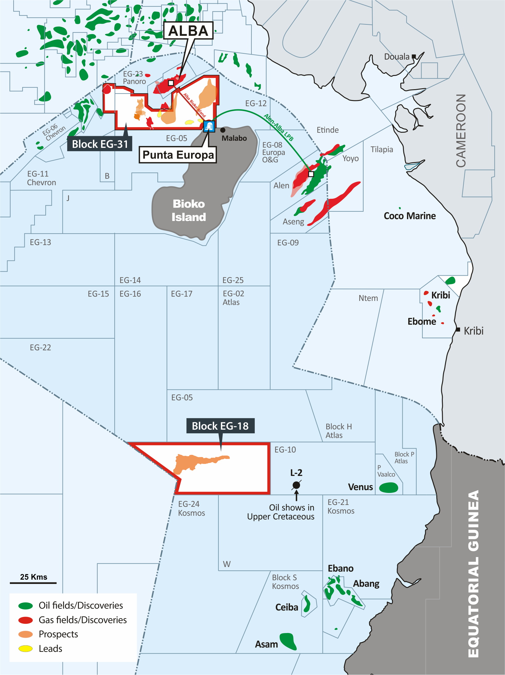 Since 2023, in partnership with GEPetrol, Meren has focused its ex­ploration efforts on both Miocene and Cretaceous depositional systems off­shore Equatorial Guinea. The company has taken a leading role in the renewed interest in this region, acquiring an 80 % interest in two offshore explora­tion blocks in 2023. These blocks pro­vide a balanced portfolio, combining near-field, infrastructure-led appraisal and exploration within the established Miocene Isongo play (EG-31) with frontier opportunities in the emerging outboard deepwater Upper Cretaceous play (EG-18).