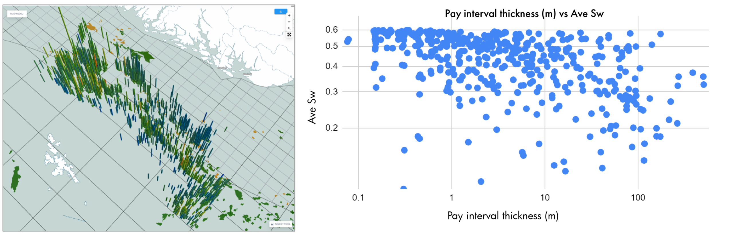 EarthNET is being used in the North Sea to identify overlooked pay intervals in legacy wells from both the Norwegian and UK sectors. These studies highlight exploration opportunities in a mature basin. Several hundred pay intervals have been identified in parts of wells that were previously thought to be dry. Energy companies are using this large database of overlooked pay intervals as a starting point for further evaluation of exploration opportunities. Some of the pay intervals are thick with significantly reduced water saturation and some thinner and more subtle. Also the subtle ones may be “smoking guns” that can lead to commercially attractive opportunities when pursuing them further using seismic data.