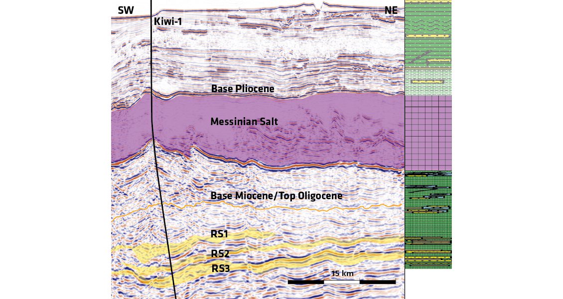 To date, exploration in this large area has been limited, and consequently the petroleum systems are currently not well understood. Only two exploration wells, Kiwi-1 (2010) and Sidi Barani-1, (1976) have been drilled, and both were dry, although Kiwi-1 did prove very good sandstone reservoir properties of Rupelian age (Figure 5). New seismic 2D data acquisition is currently being planned to enable a full assessment of the petroleum system in this area. These data will form the basis for a future licensing round tentatively planned for 2017.
