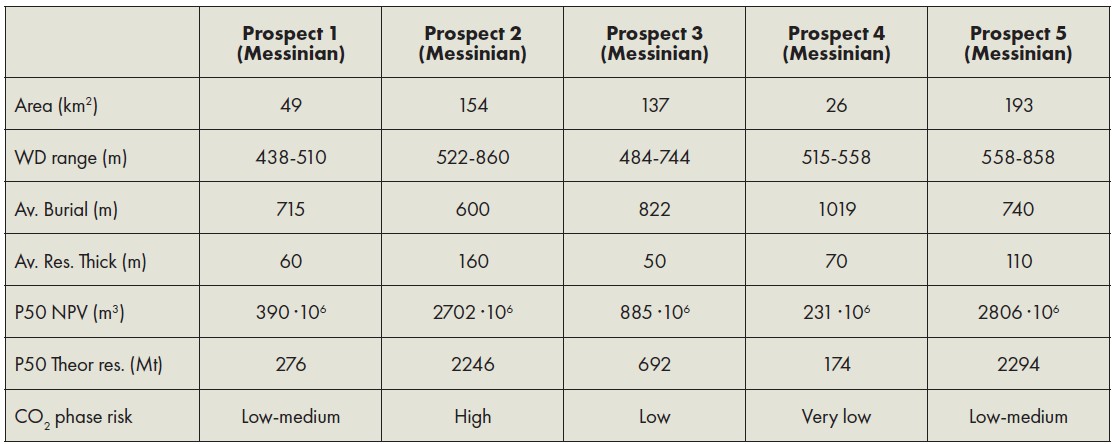 Their GCS potential reflects the interplay of stratigraphic architecture and structural closures. The stratigraphic features were recognised along sedimentary fairways interpreted from the morphology of the late Messinian and top Tortonian surfaces. The structural traps are predominantly salt-related, including reservoir pinch-outs against diapir flanks and four-way anticlines above diapirs (Matias, 2007). Five prospects have been identified, based on the lateral continuity of the Messinian (Prospects 1, 2 and 3) and Tortonian (Prospects 4 and 5) reservoirs.