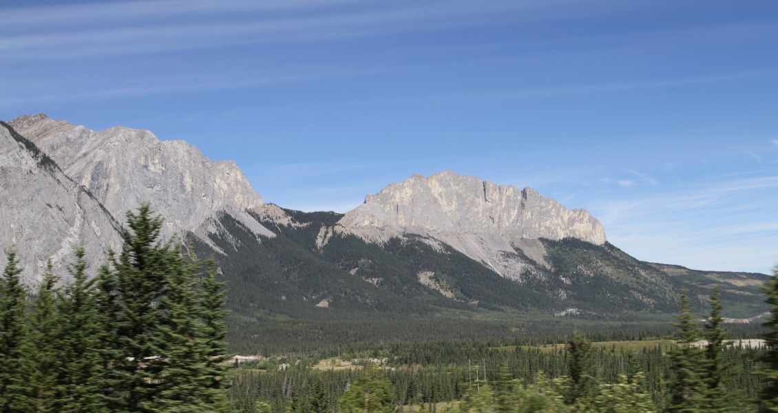 The next major sight on the highway is the majestic Castle Mountain, where the Castle Mountain thrust fault is nearly flat below the tree line, putting Cambrian Eldon, Stephen Cathedral and Gog Formations, as well as Precambrian Miette, on top of younger Paleozoic carbonates of the front ranges. As we cross this fault we transition to the Main Ranges of the Rocky Mountains.