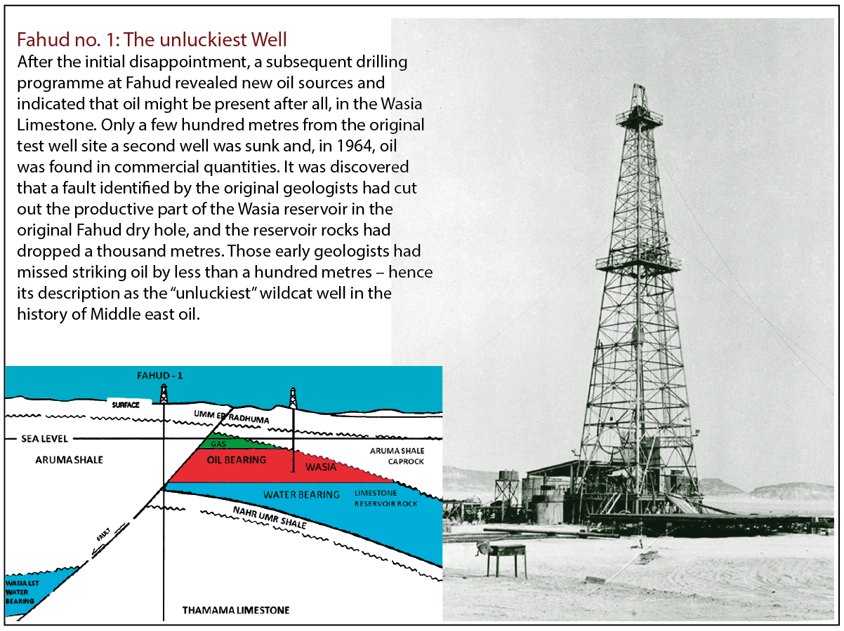 Royal Dutch Shell took over the management of PDO and undertook a comprehensive review of all the geological and seismic data. Hugh Wilson, Shell’s regional exploration manager, carried out a careful study of cores, cuttings and logs from the dry IPC wells. By then too, discoveries had been made in the Cretaceous Thamama in Abu Dhabi (GEO ExPro, Vol. 8, No. 3).