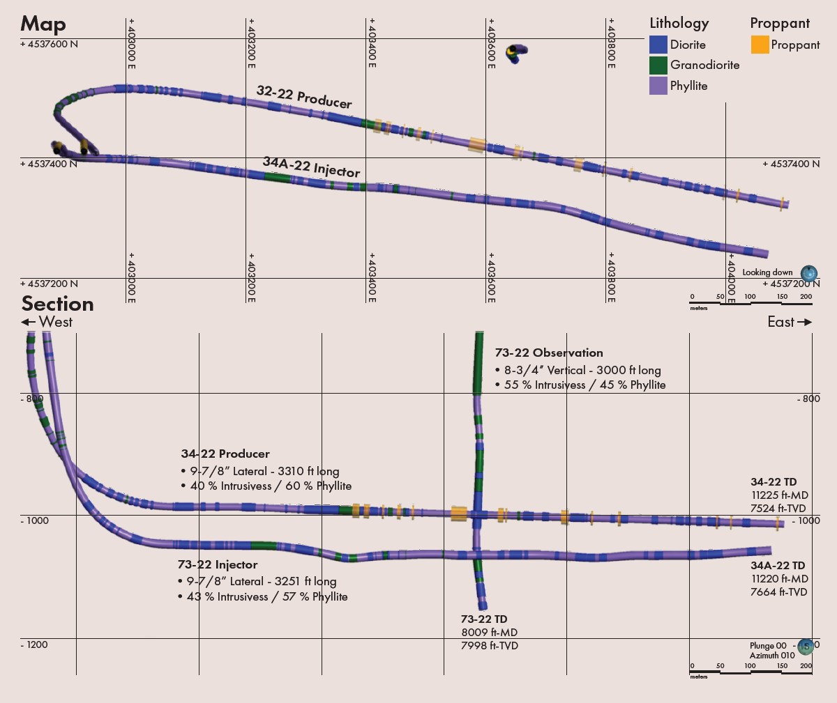 “Our number one goal for Project Red was to prove that using horizontal drilling and multistage stimulation treatment technology is viable for geothermal. It’s hugely validating to show that impermeable rock, previously considered too hard, too deep, and too hot for tech to handle, can be successfully drilled,” says Fercho.
