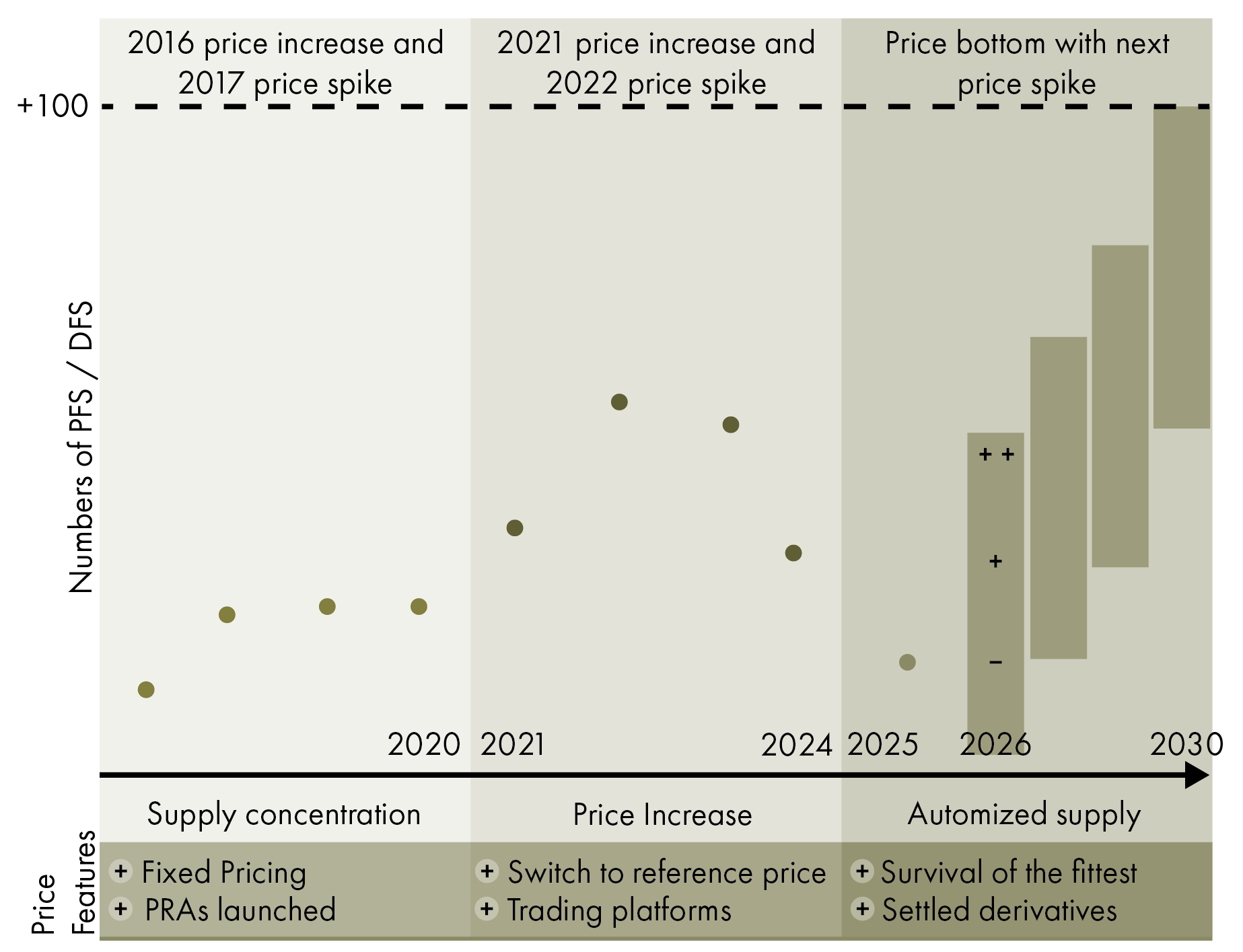 Based on SCI (Figure 1) and Benchmark Intelligence data (Figure 2), the most important early warning came from project development information. During the 2021- 2023 boom, more than 50 lithium projects globally pro­gressed to feasibility studies. Following the sharp price correction of 2023-2024, that pipeline collapsed. By 2025, the number of feasibility studies and Final Investment Decisions had fallen to historic lows. Capital withdrew, boards delayed sanctioning, and the industry effectively chose to wait out the downturn.