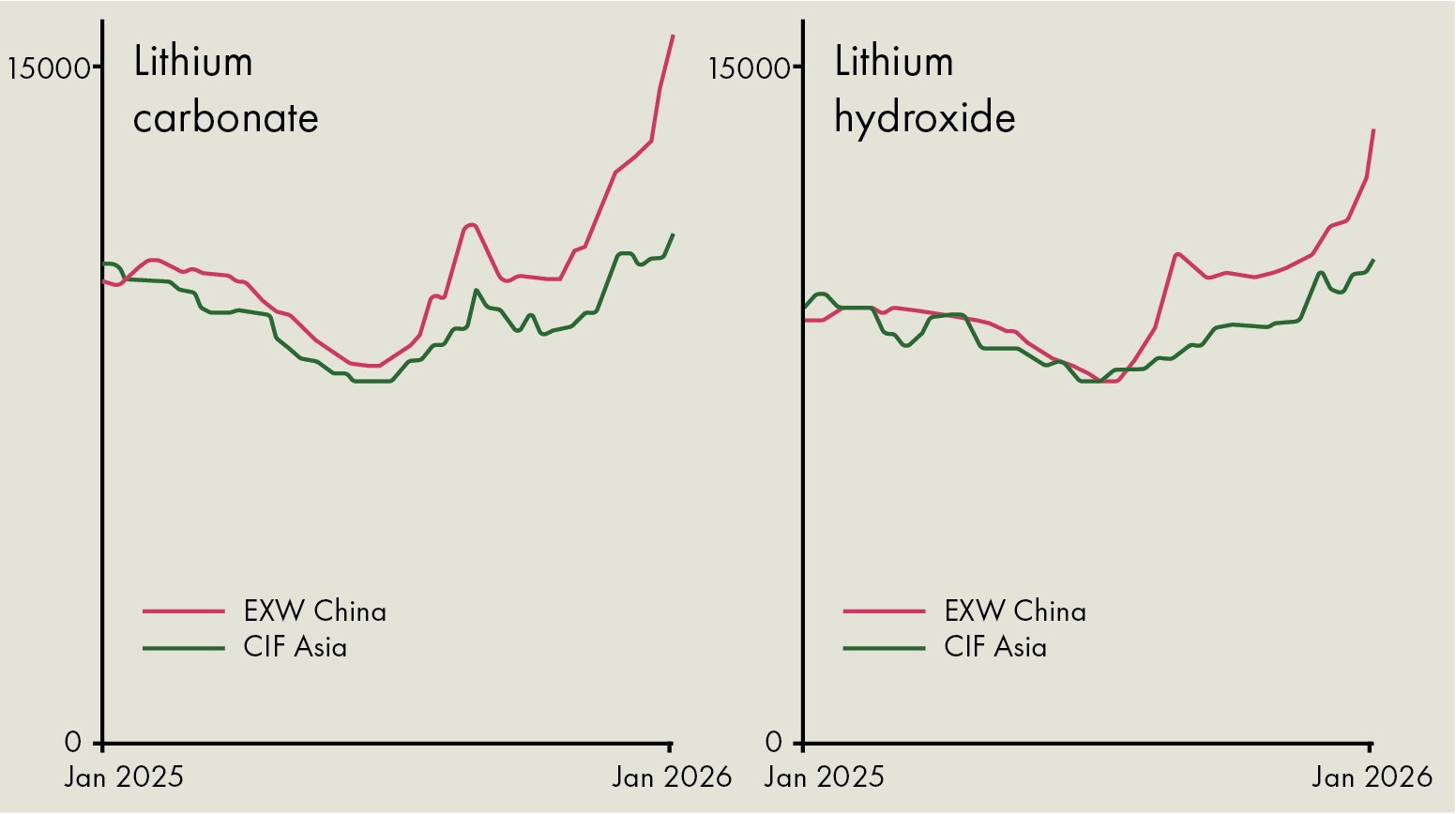 Figure 2: Increasing lithium price in beginning of 2026. Source: Redrafted from Benchmark Lithium Price Assessment.