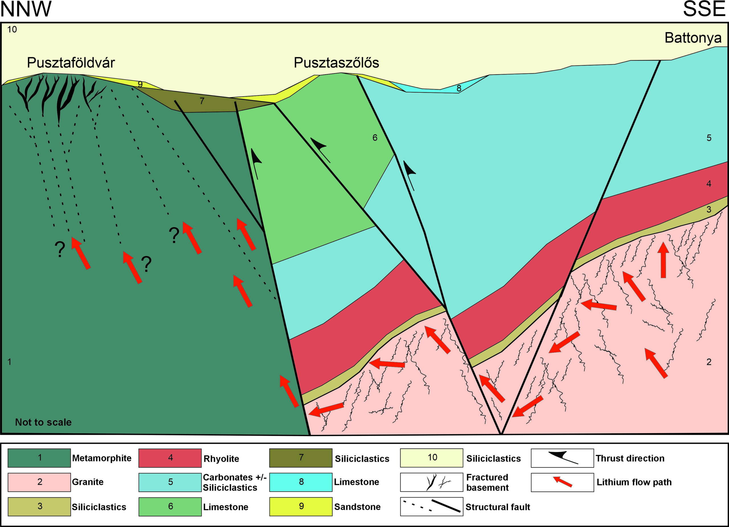 That changed when we re-analyzed the core with modern mineralogical methods. To our surprise, nearly half of the rock’s mineral content was not quartz (SiO₂), but a lithium-bearing secondary mineral called cookeite. Cookeite is a Li-Al phyllosilicate, typically found in hydrothermally altered pegmatites and granitic systems – not in conventional oil reservoirs. Its presence indicated that lithium-rich hydrothermal fluids had circulated through this formation long after the reservoir formed. In other words, this “ordinary” oil well had intersected an unrecognized lithium-bearing system, hidden within the sedimentary sequence. Since then, more and similar features were observed in several other wells.